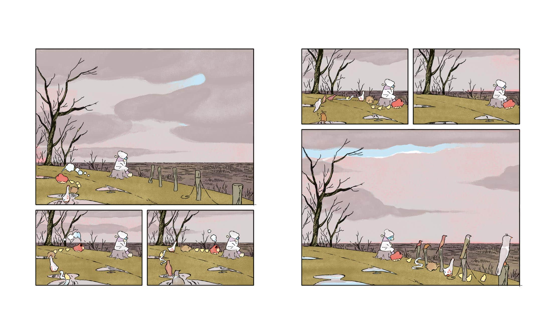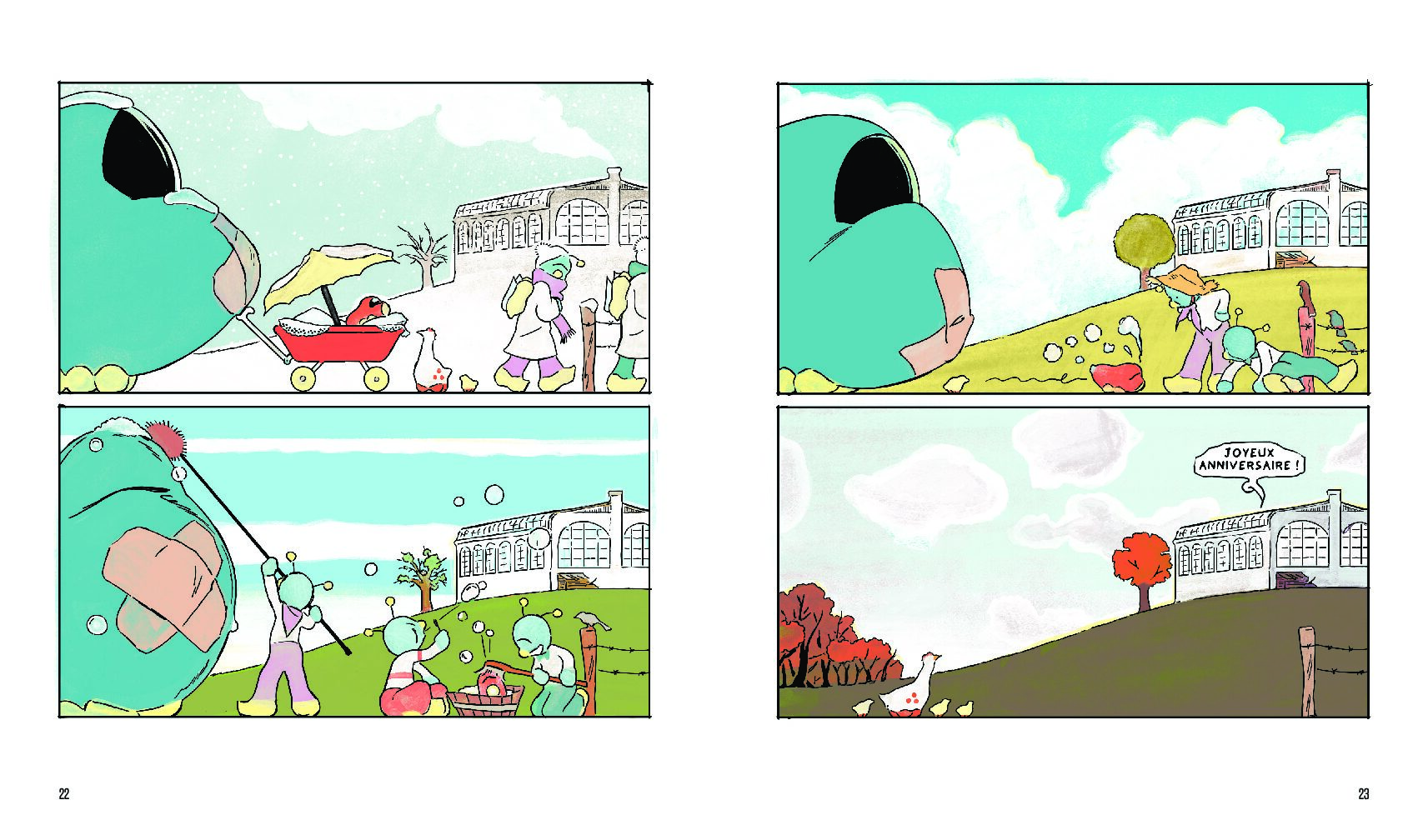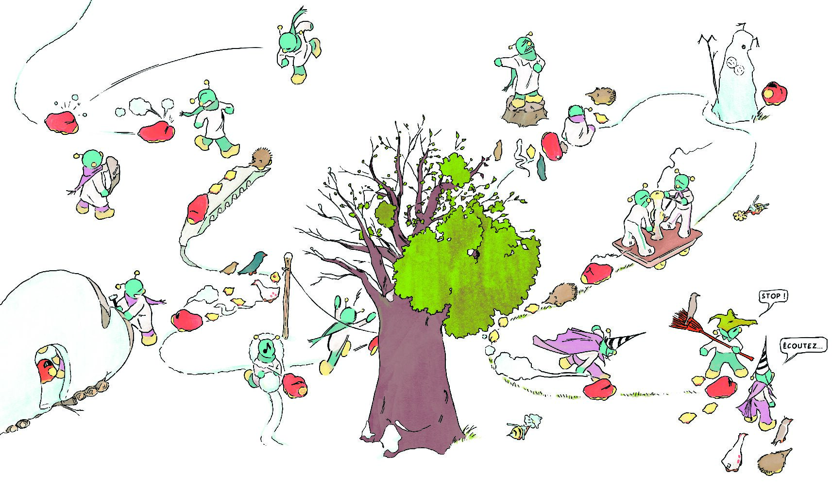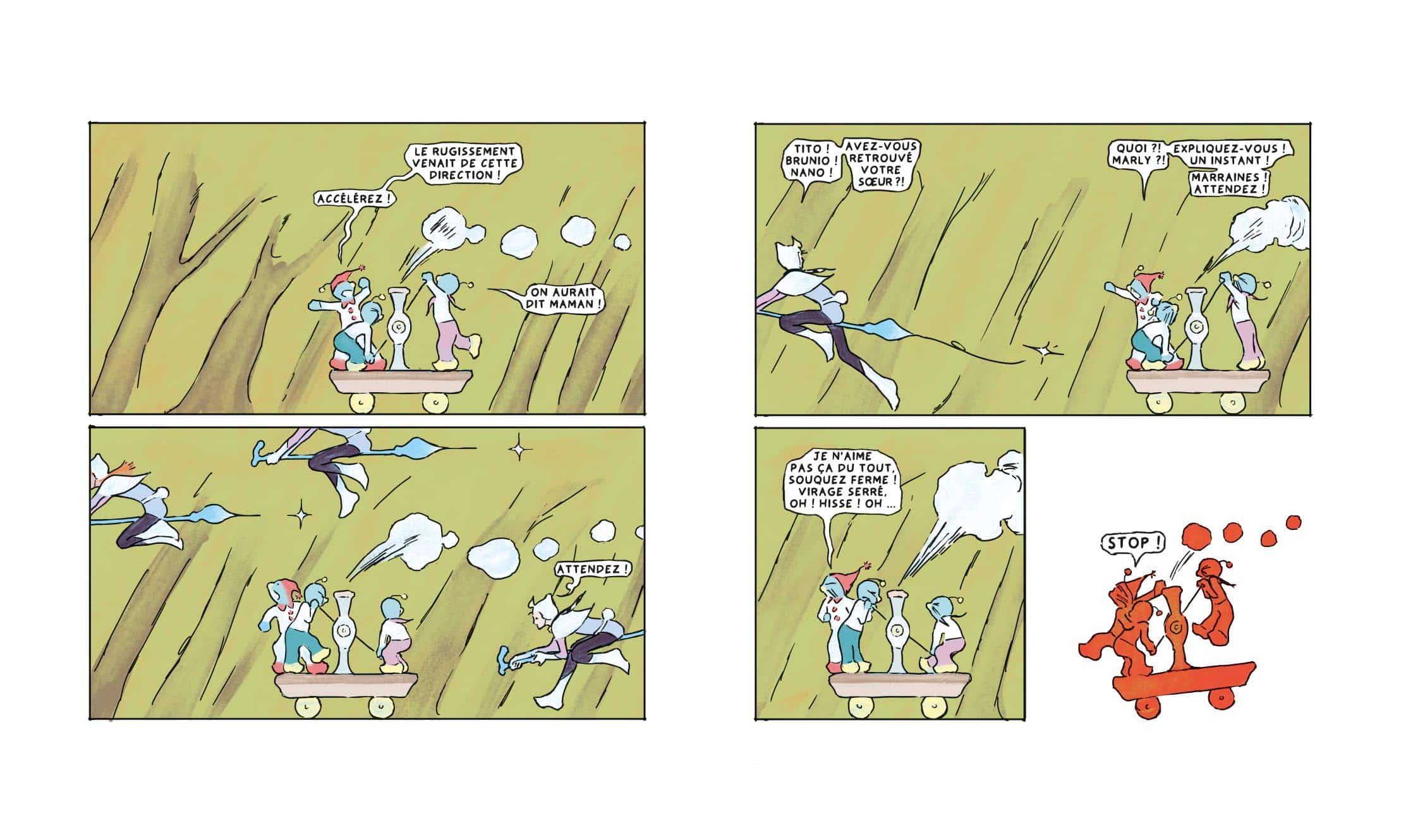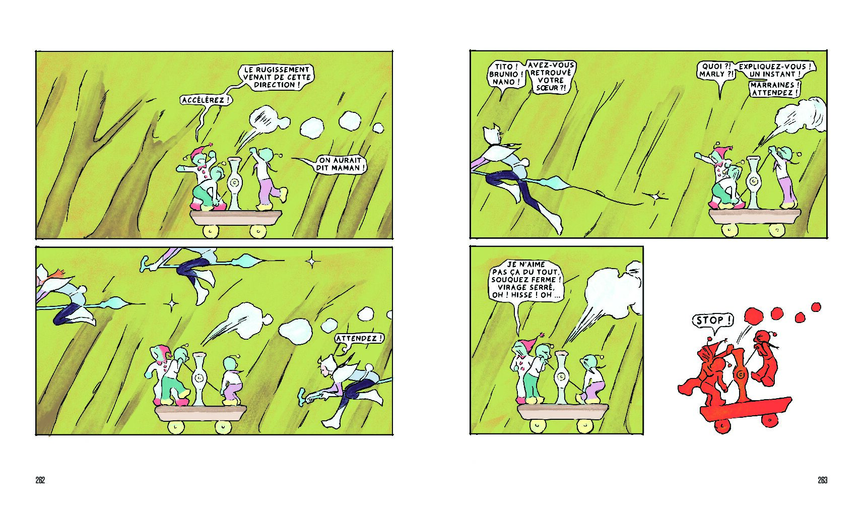Bienvenue dans un univers pastoral doux et étrange, à mi-chemin entre la féerie de Little Nemo et le foisonnement débridé de Jérôme Bosch. Ici, les oiseaux chantent, les sirènes ronflent, les arbres râlent et les maisons maisonnent.