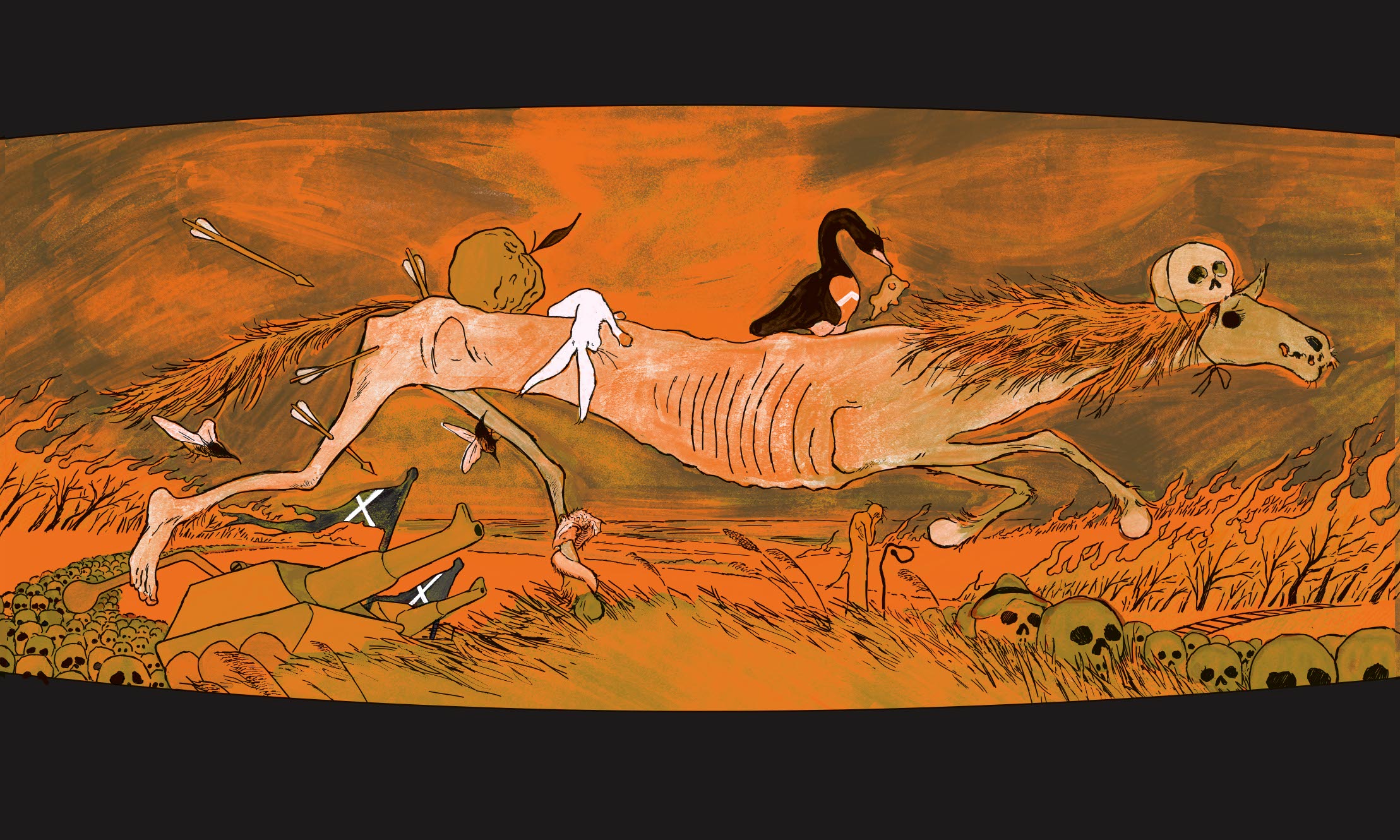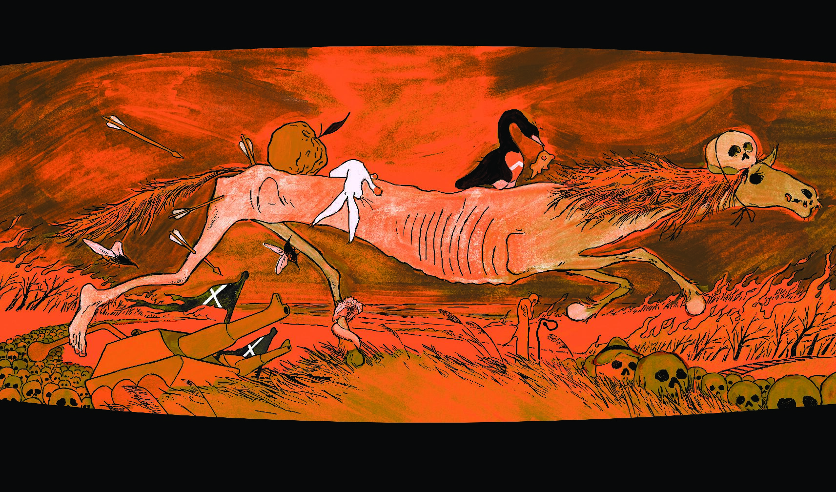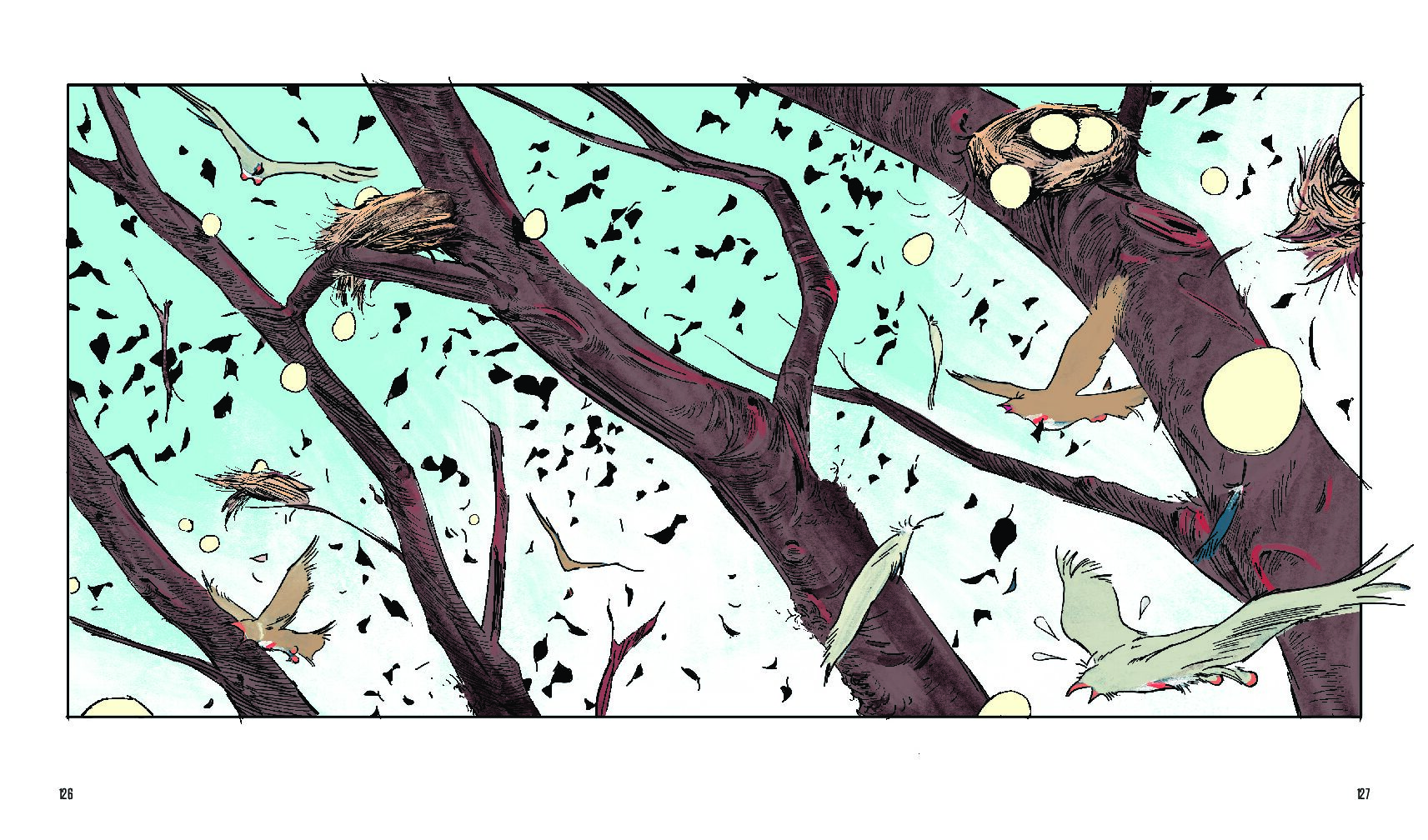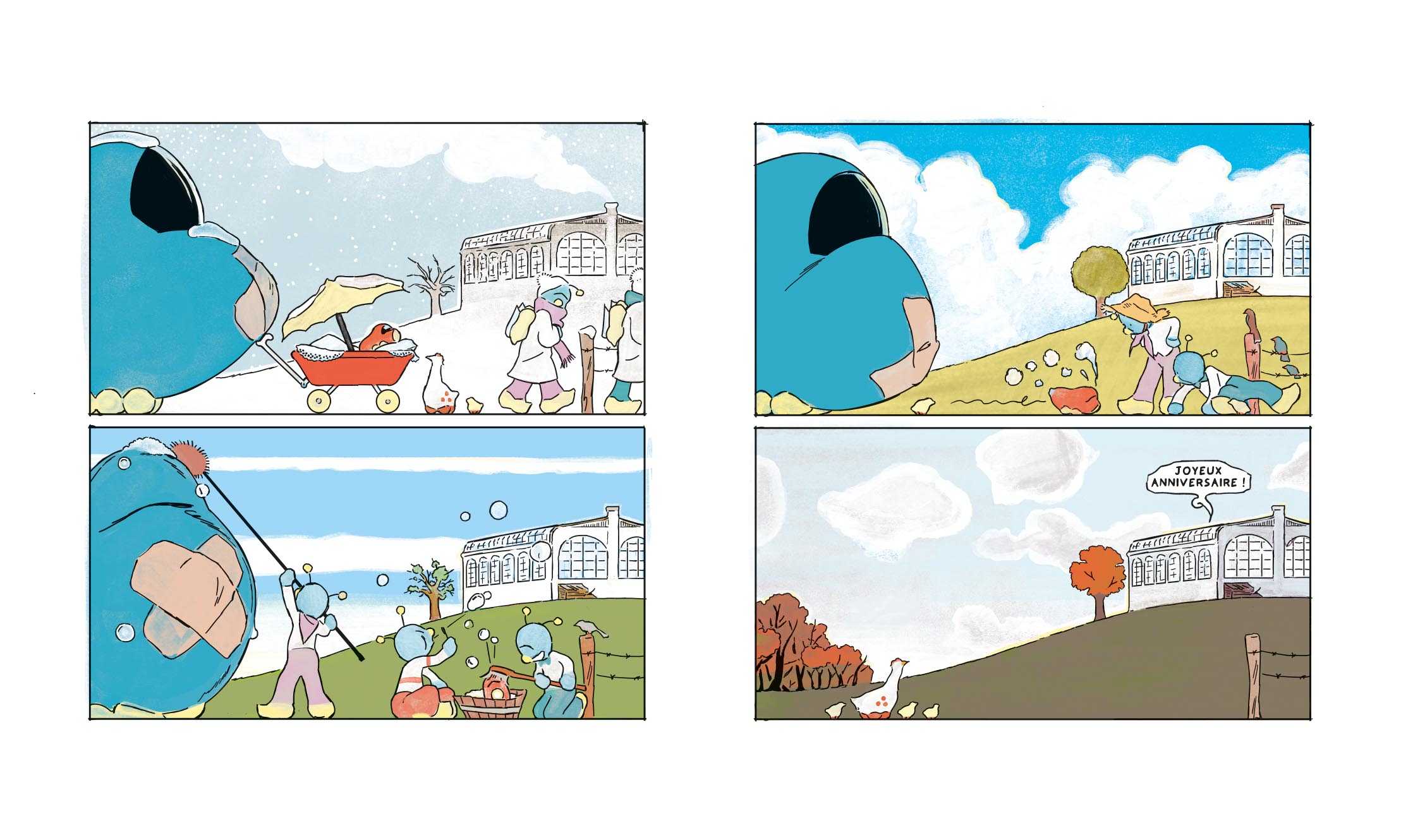 Bienvenue dans un univers pastoral doux et étrange, à mi-chemin entre la féerie de Little Nemo et le foisonnement débridé de Jérôme Bosch. Ici, les oiseaux chantent, les sirènes ronflent, les arbres râlent et les maisons maisonnent.