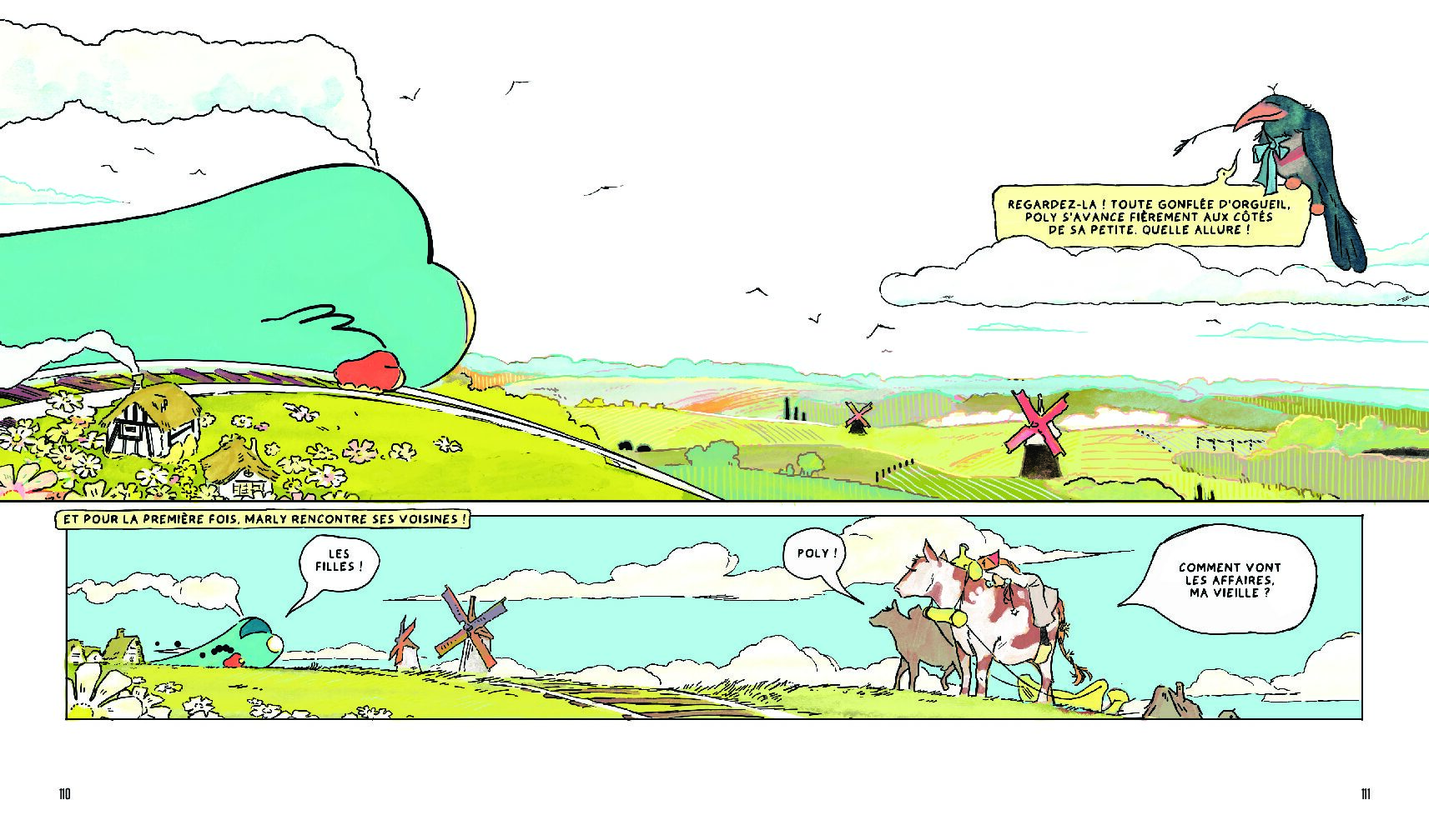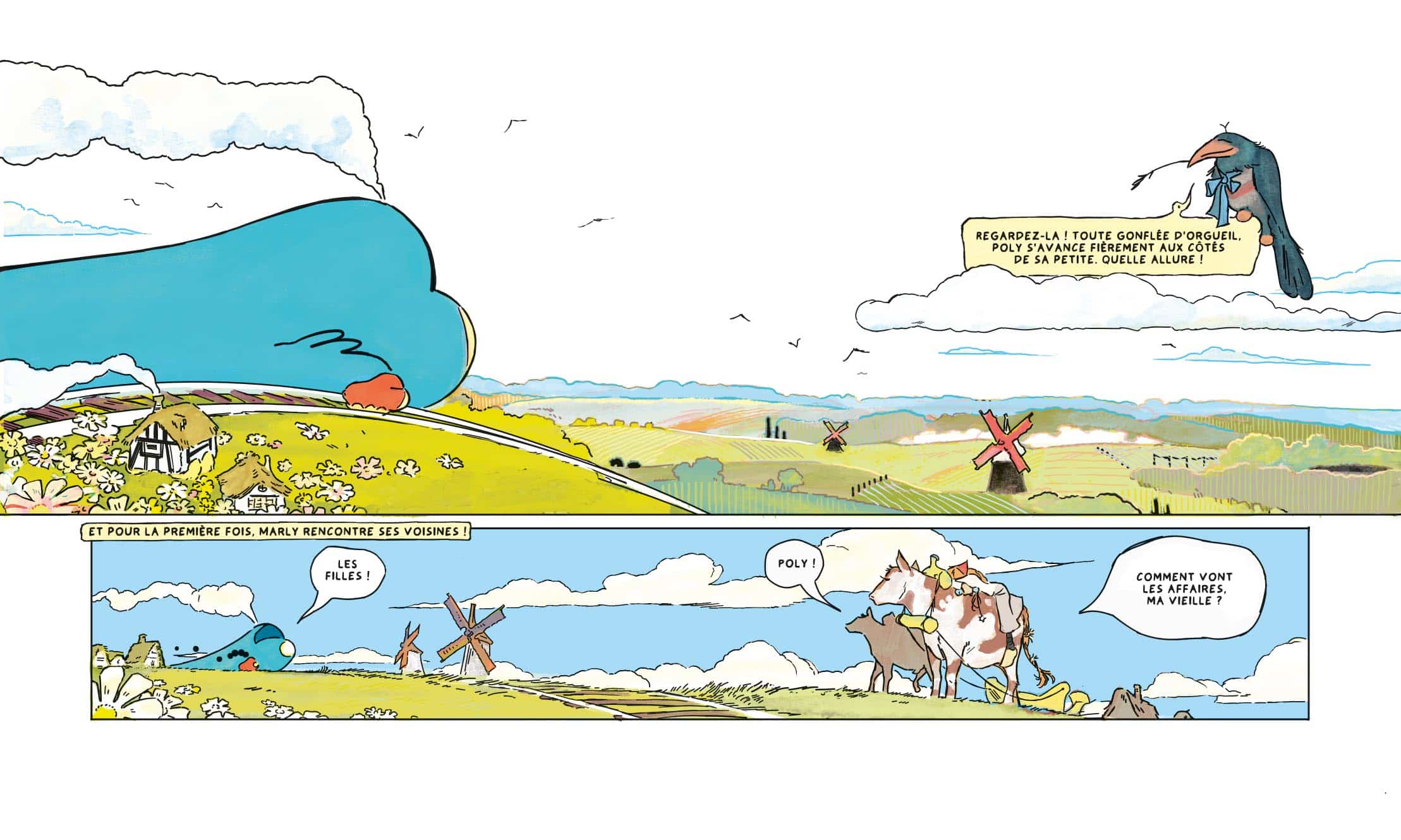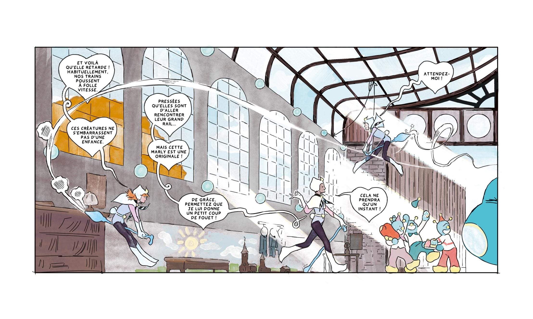 Marly est une petite locomotive aussi attachante que candide. Elle nous embarque avec joie dans un conte d’aventures épique, peuplé de créatures rocambolesques. Partout où ses roues l’amènent, le désordre s’installe ! Au grand dam de sa famille, c’est le caillou dans la chaussure de ce monde bien huilé. Mais rassurez-vous, la Patronne protectrice de la Région Nord veille au grain. Manteau de paille, casque d’acier, gants de velours : partout où elle avance, le désordre recule !